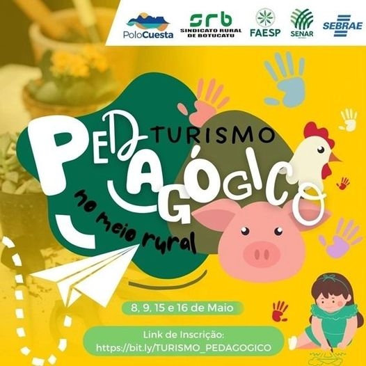 O SEBRAE Botucatu promoverá nos dias 08, 09, 15 e 16 de maio o Curso de Turismo Pedagógico no Meio Rural.